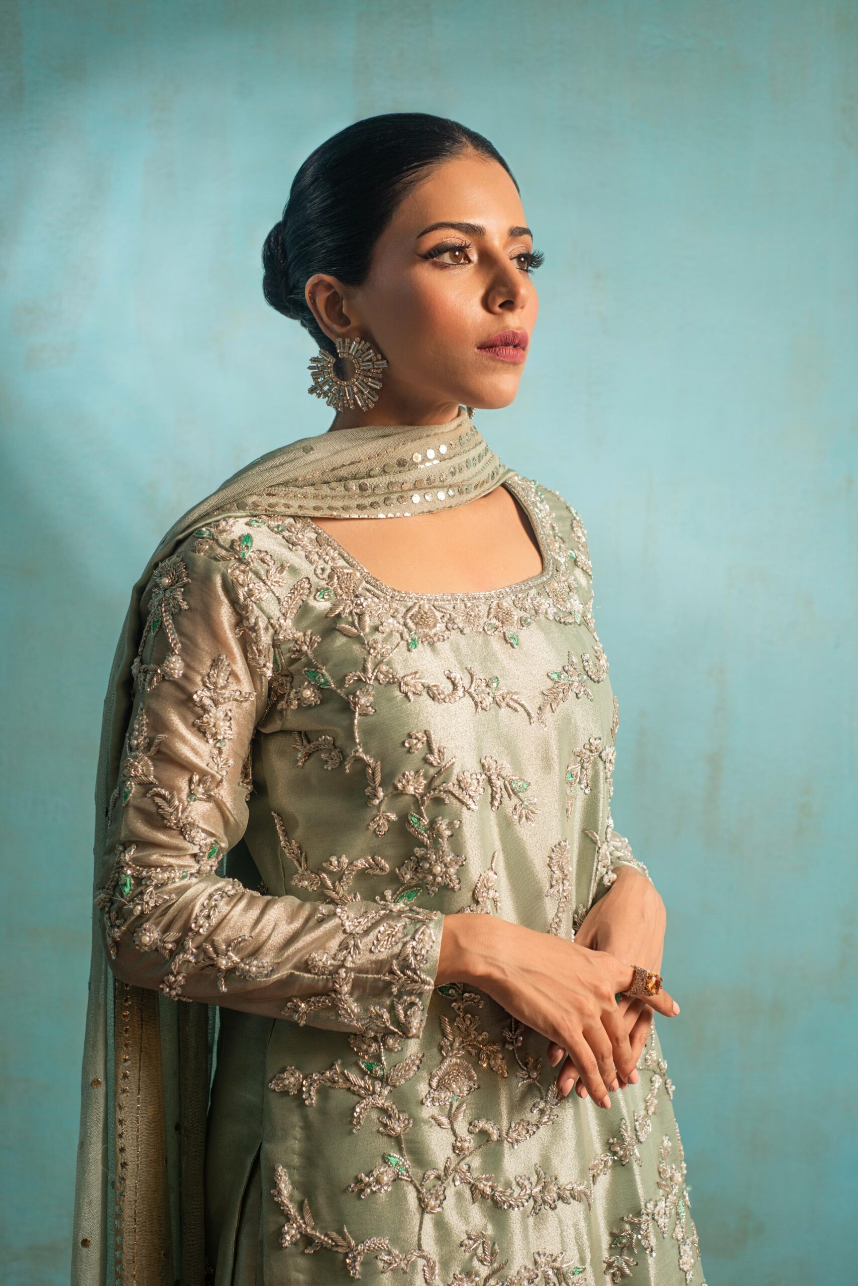 ✨ Soft pastels, intricate handwork beautifully done on pastel shade straight full length shirt With mukesh work duppatta complimenting beautifully